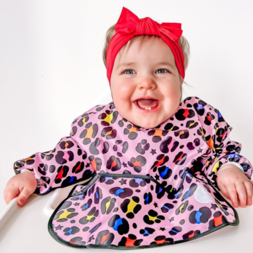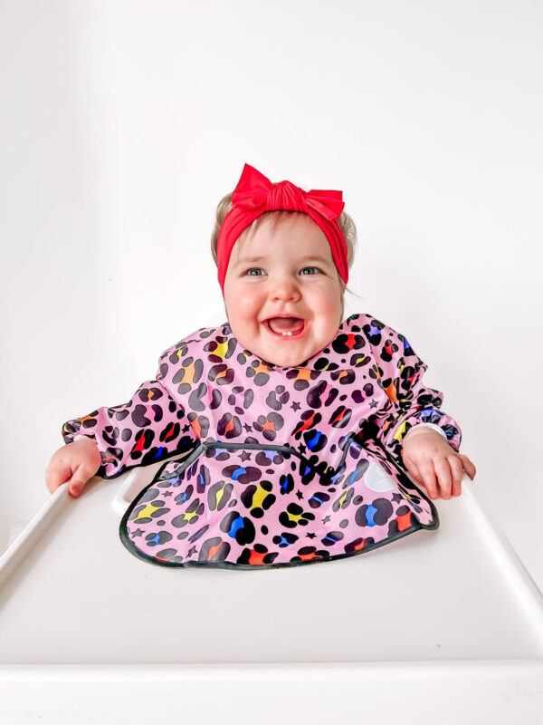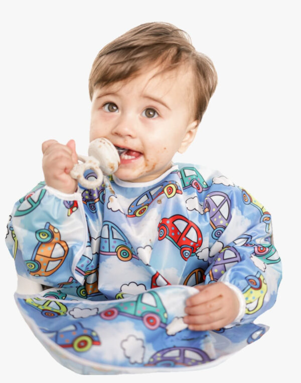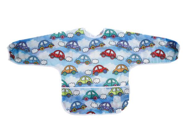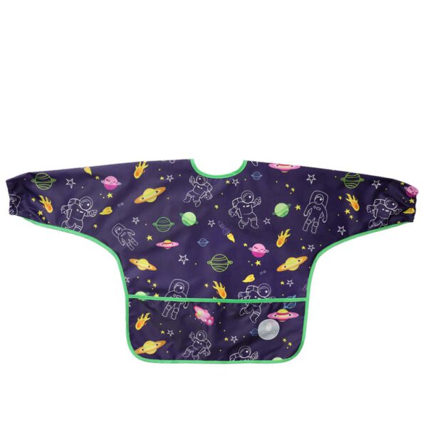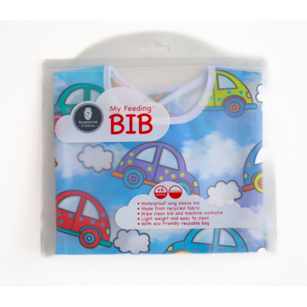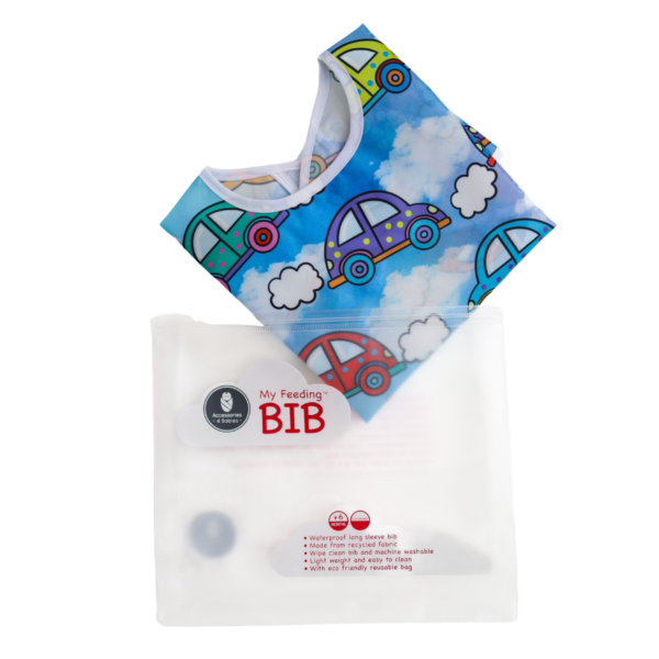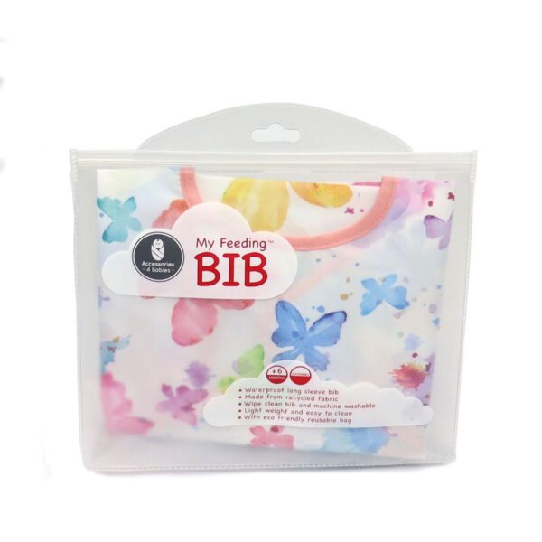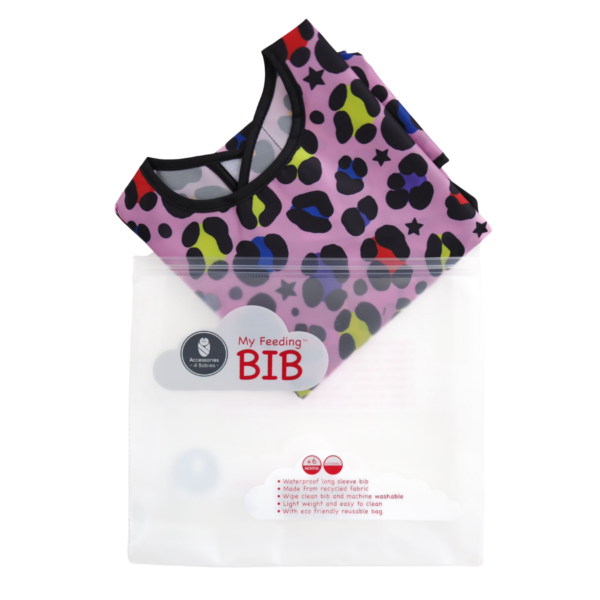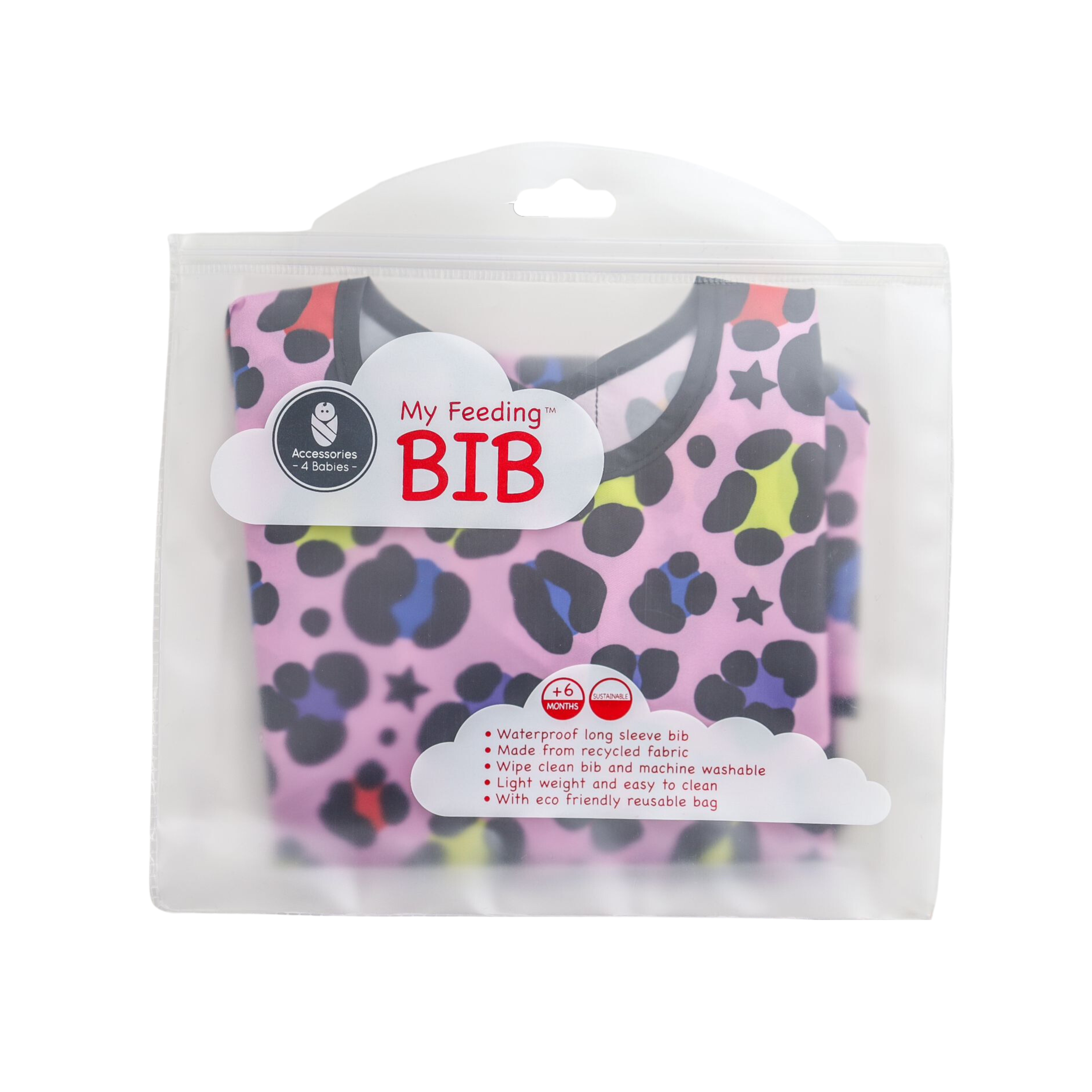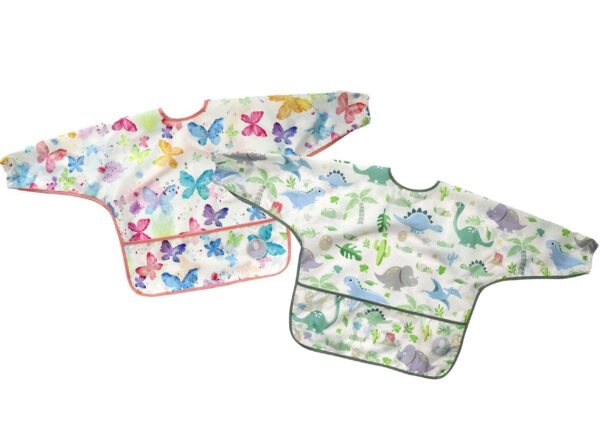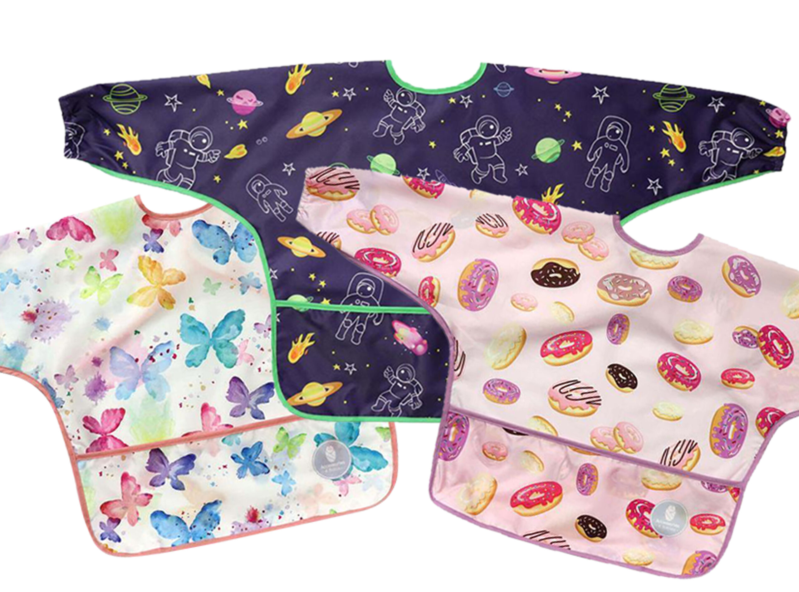 Our new waterproof long sleeve bib made from recycled oeko-tex fabric and comes with a eco friendly reusable bag.